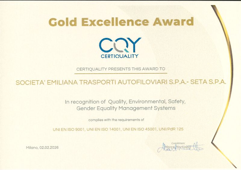 SETA Spa - l'azienda che gestisce il servizio di trasporto pubblico locale dei territori provinciali di Modena, Reggio Emilia e Piacenza - ha conseguito la certificazione della parità di genere.